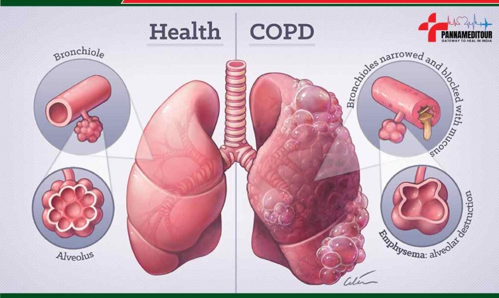 The chronic inflammatory lung condition known as COPD results in blocked lung airflow. Usually, two conditions are combined to cause it: